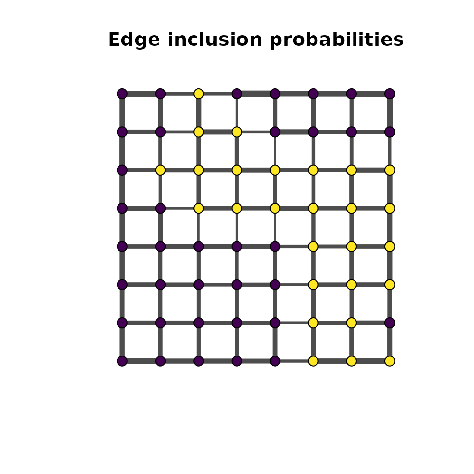 For the examples below we use a simple region-growing algorithm to generate irregular spatial clusters on a grid graph. Starting from random seed vertices, regions expand outward one cell at a time, producing blocky but asymmetric patterns: