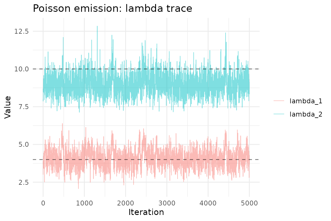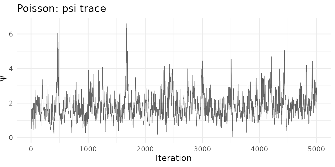 labs(title = "Poisson: psi trace", x = "Iteration", y = expression(psi))